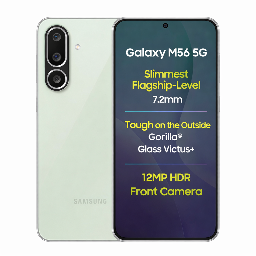 Samsung Galaxy M56 5G Mobile (Light Green, 8GB RAM, 256GB Storage),Ultra Slim Design,Gorilla Glass Victus+ Protection ,10-Bit HDR Video Recording,50MP Camera Setup ,AI Powered Features ,Vapour Cooling System ,Smooth & Lag-free Gaming,Charger Not Included